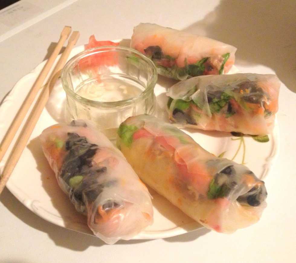 Soak rice paper in warm water until soften