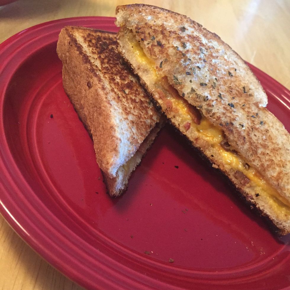 The difficult part is deciding on a heat for the grilled cheese. Too high could result in burning and too low could result in it taking a while to melt the cheese. Keep an eye on your bread!