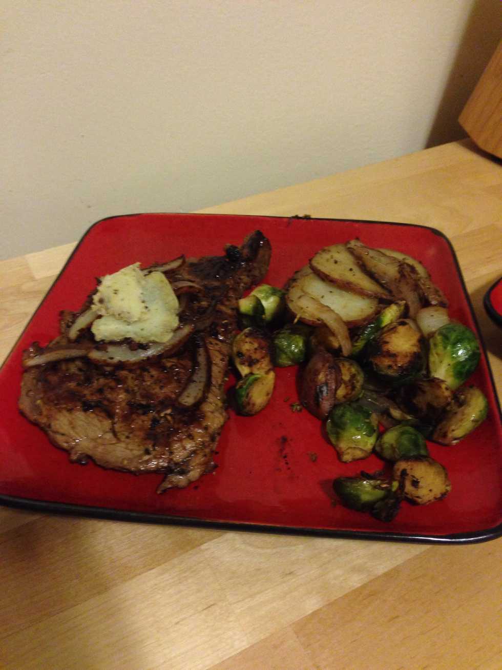Add whatever seasonings you prefer on your steak. I added a pinch of black pepper, but it can be overpowering and I probably won't use again. Add a pinch of garlic salt.