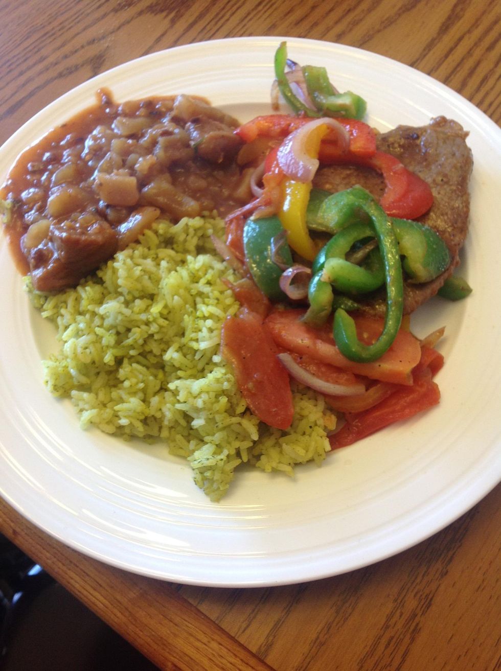 Add the steak into the pan. Flip when one side is browned. Add vegetables.