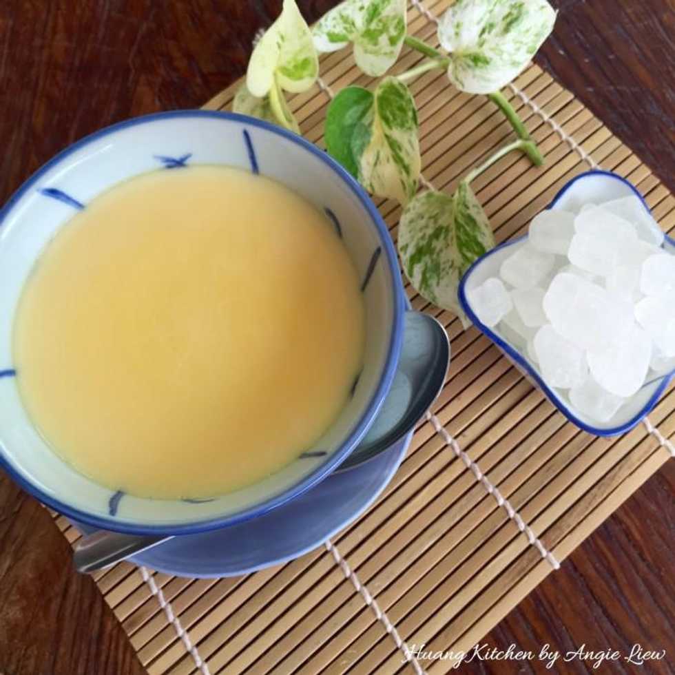 Boil rock sugar and water on low heat until the sugar dissolved, stirring occasionally.