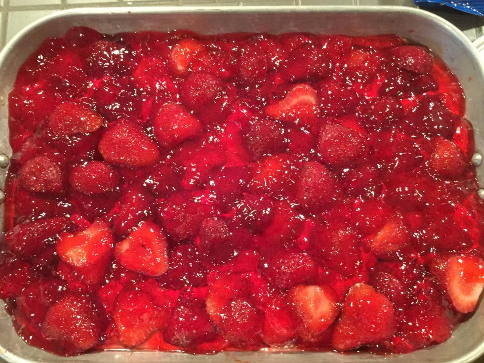 Place the strawberries evenly across the cream cheese mixture.