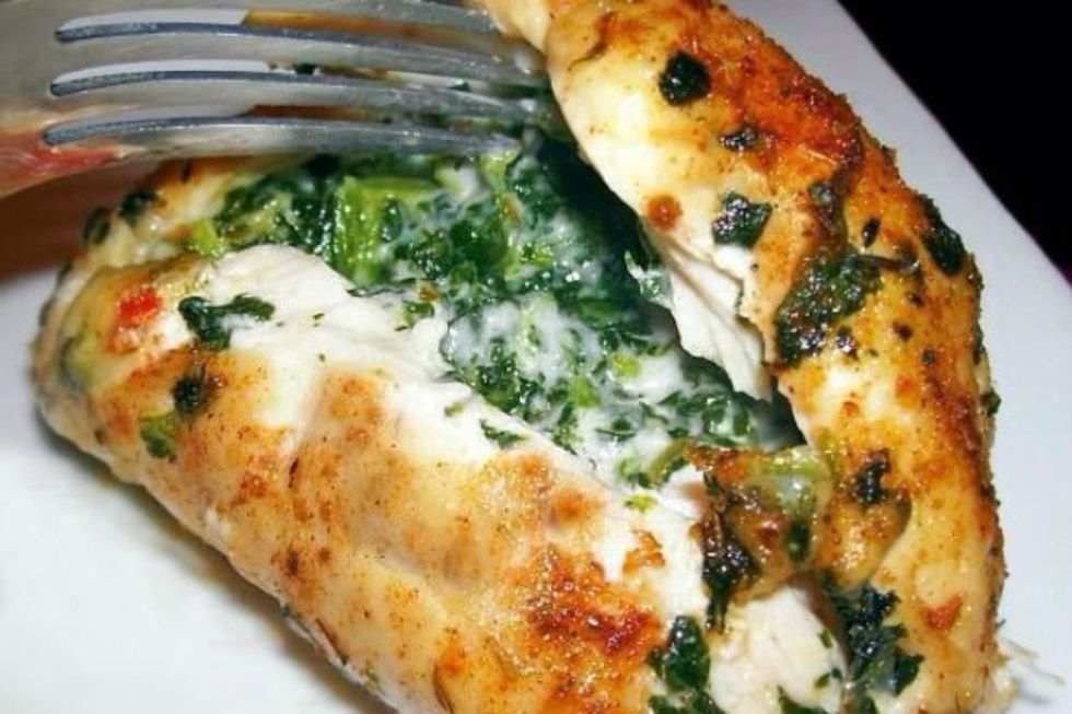 Spread a thin layer of the spinach mixture on each breast, avoiding the edges.