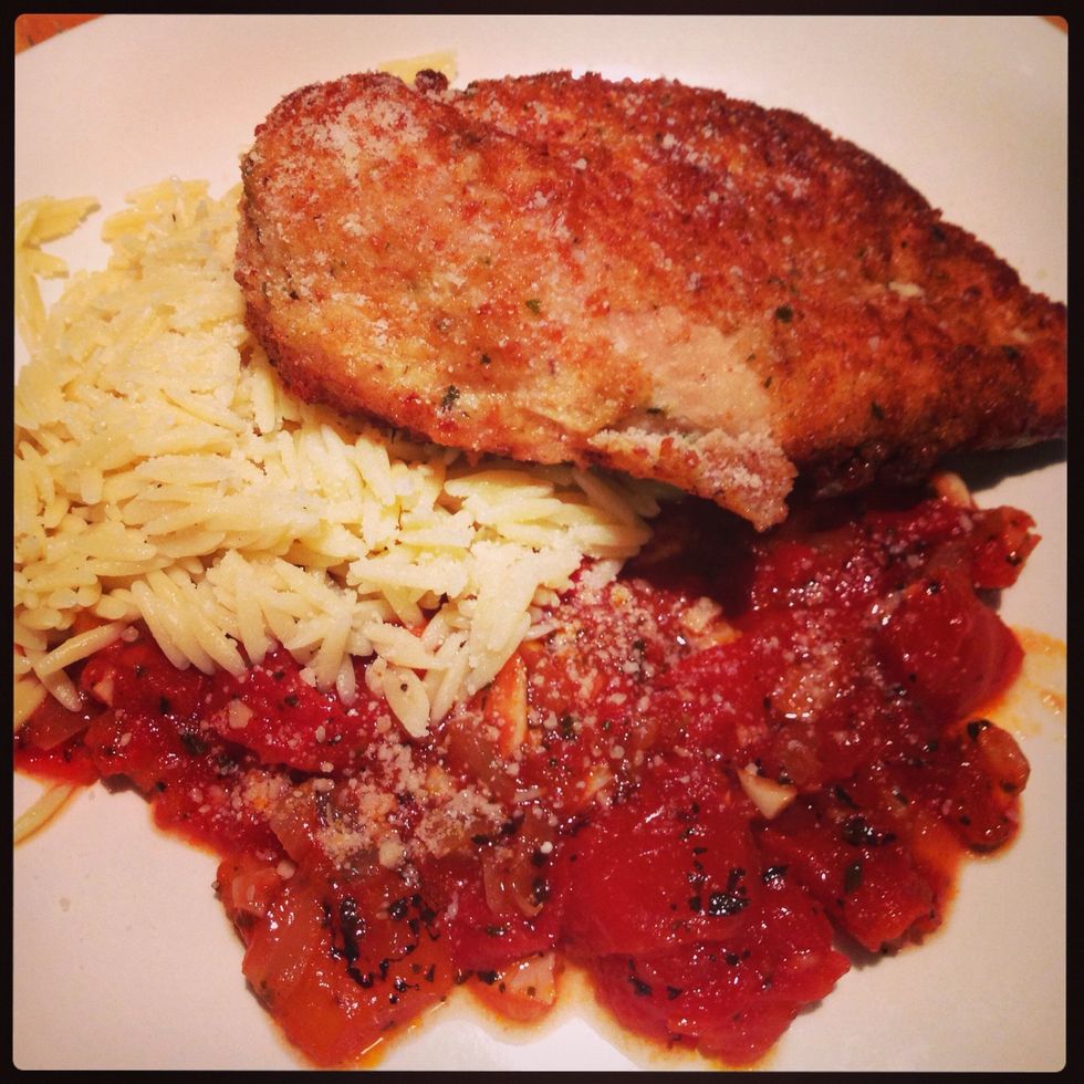 Serve with tomato sauce and orzo (optional). Great easy weeknight meal!