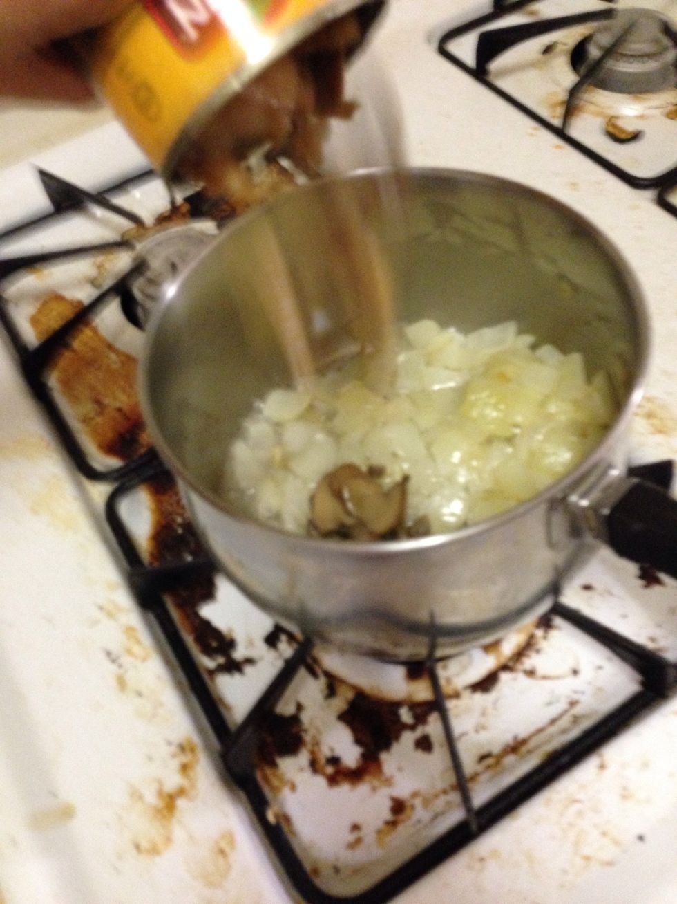After sautéed add a can of mushrooms or a half a cup of mushrooms