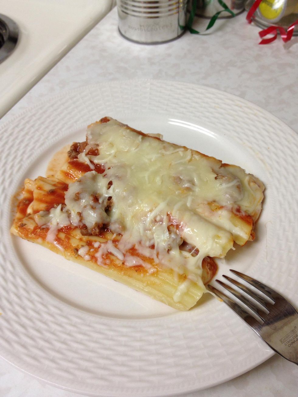 Boil water and cook manicotti according to package instructions. Adding a tsp of oil and a pinch if salt helps to keep the noodles from sticking.