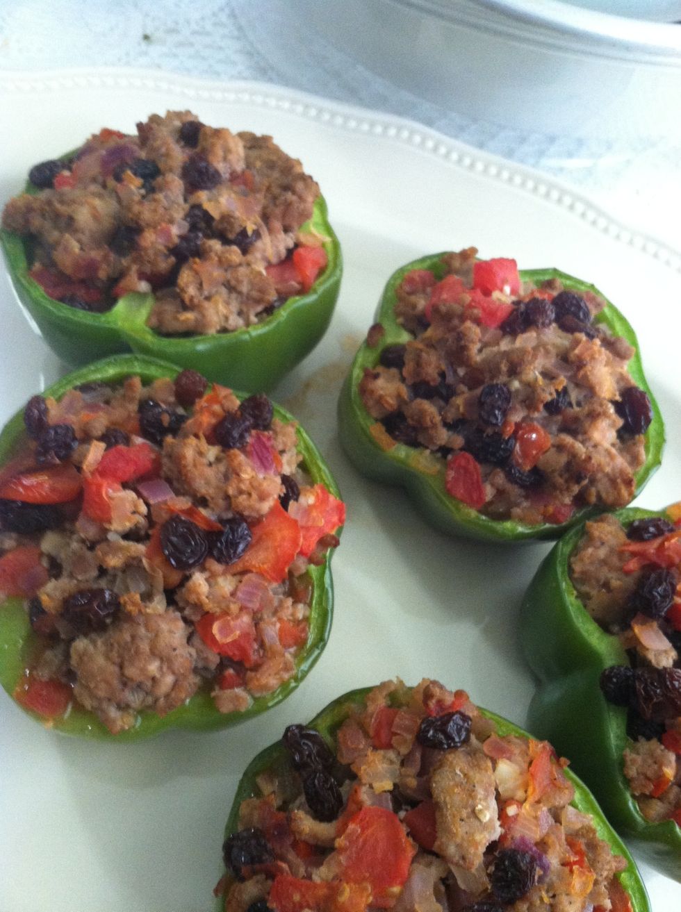 Add the stuffing in the green peppers. Then place it on the oven, 350 F for 30 minutes.