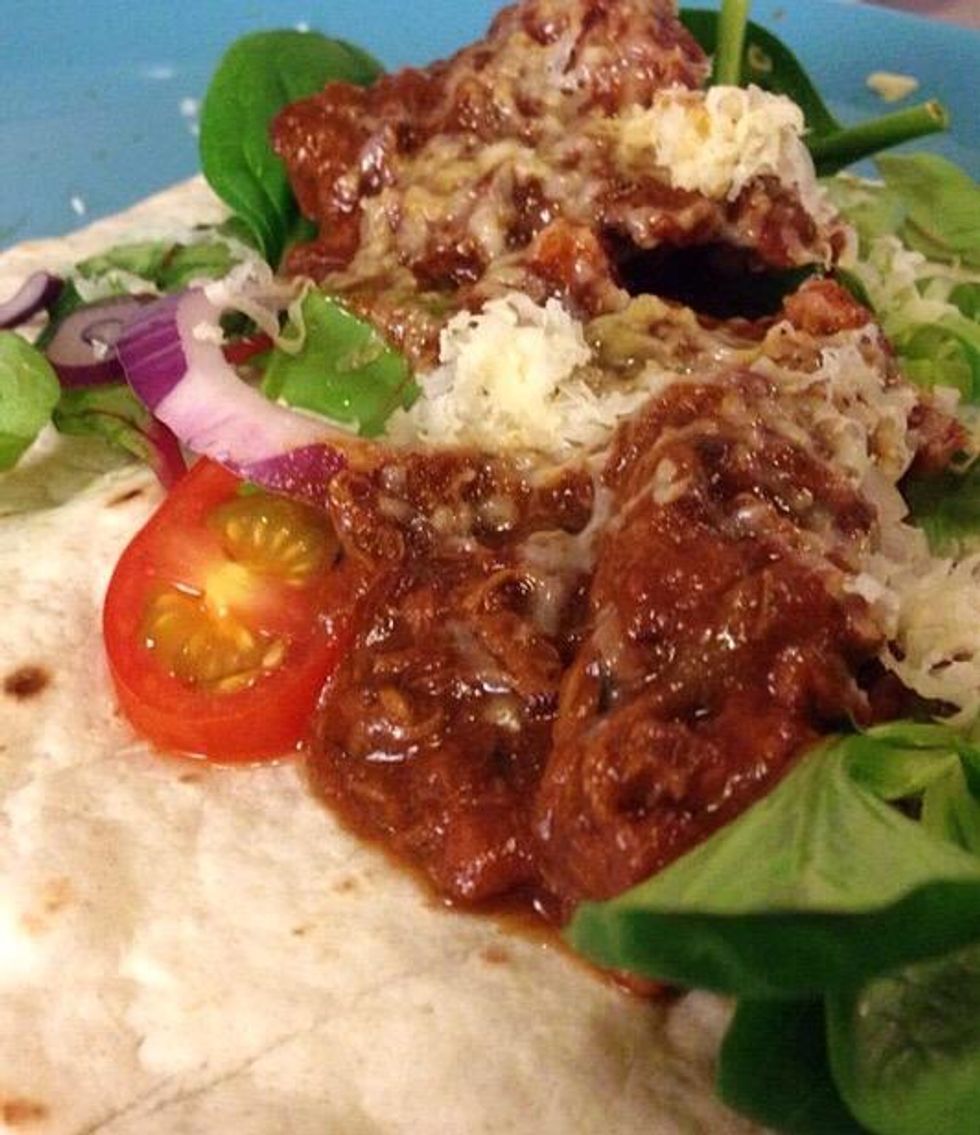 Serve with tortilla bread, salad and grated (cheddar) cheese.
