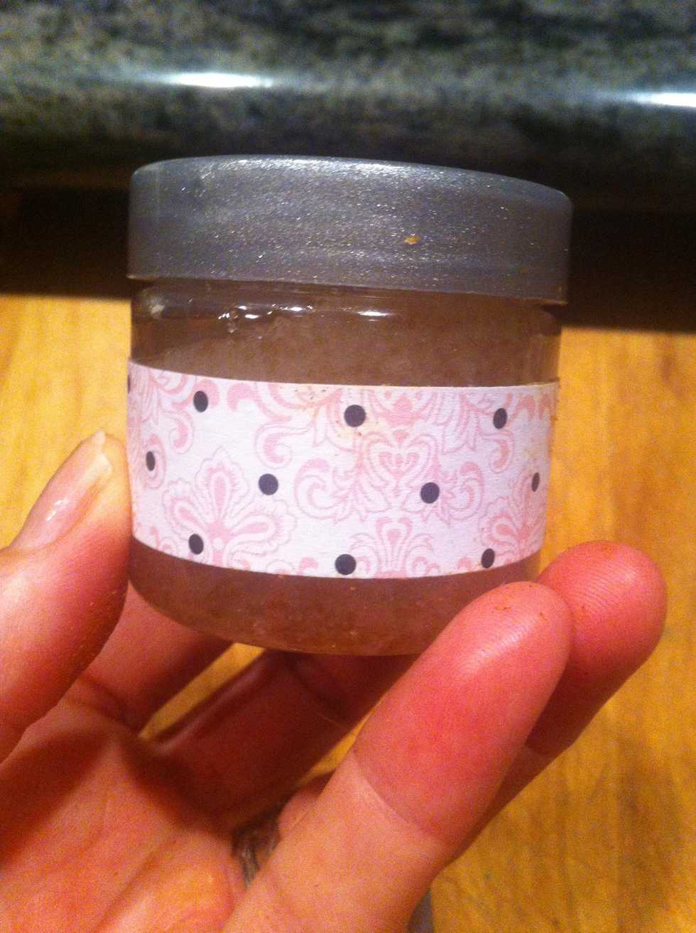 Put the cap on and a pretty paper strip. Add a label. Nice party favor. I am doing this for a baby girl shower. And a jar of spice rub. Photo follows.