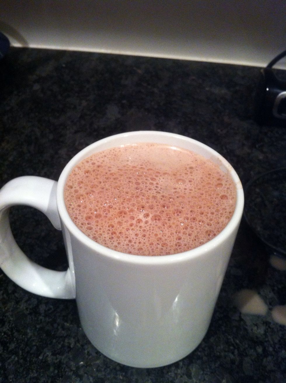 Mix with cuisinart hand blender. You can also mix with a spoon but i like it to be frothy