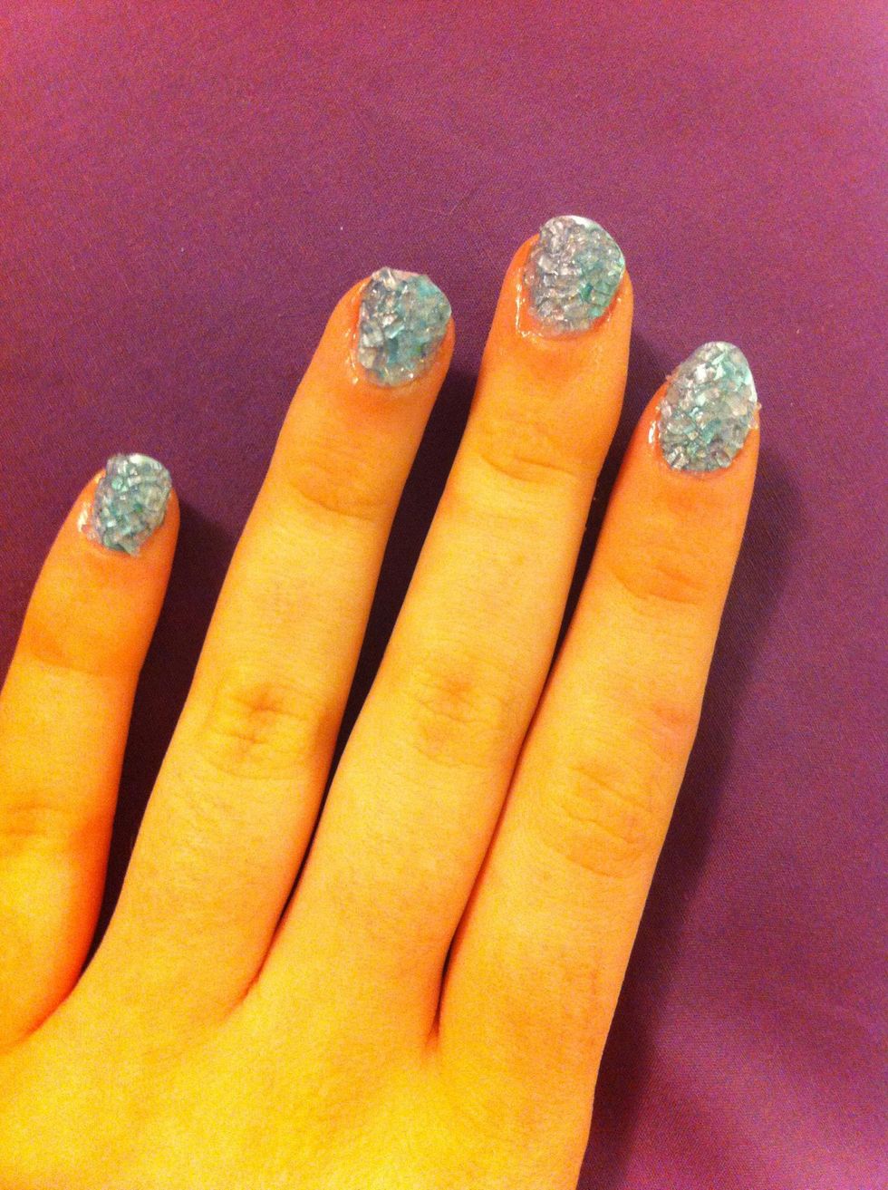 lastly, wait for the sugar to set, and carefully apply a second coat of clear polish over the sugar to keep it solidly in place.