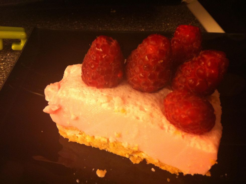 Beat the mixture again and pour on top of biscuit base. Return to refrigerator until fully set.
