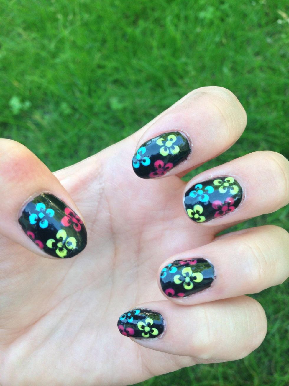 With a toothpick or nail pen, use the same colour as your base colour an do small dots toward the middle of the flower