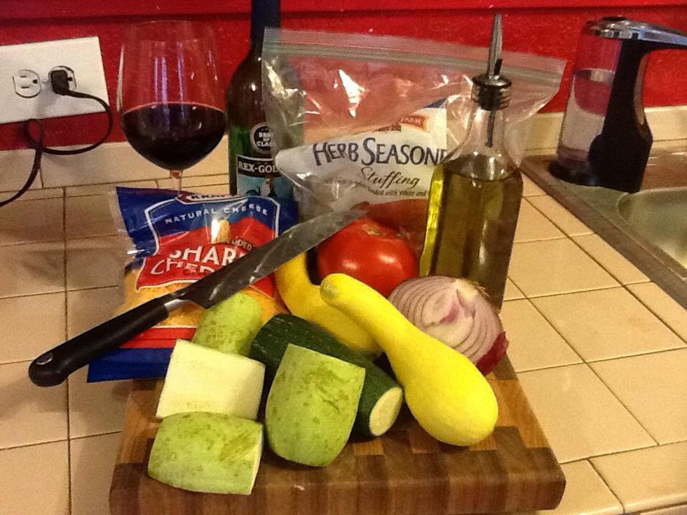 Here's what you'll need. I used a combination of zucchini, Mexican zucchini, and yellow squash. You can use just one, or any combination of thin skinned summer squash.