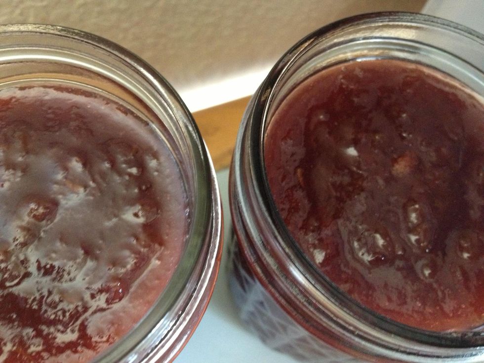 Pour the bubbling hot jam into jars, and don't even think of touching it with your fingers or tongue!!! Cool completely for several hours before closing with the lids.