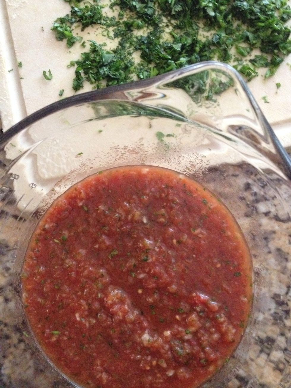 All you will need: fresh, chopped cilantro, half an onion and 1can rotel tomato, and 1 can Mexican style tomatoes