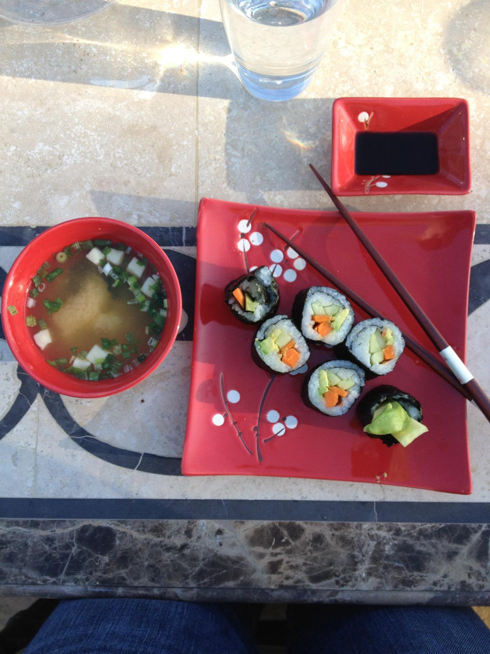 We made some instant miso soup I bought from the Japanese market to complete our meal, and ate outside on the patio at sunset. *sigh* 😌