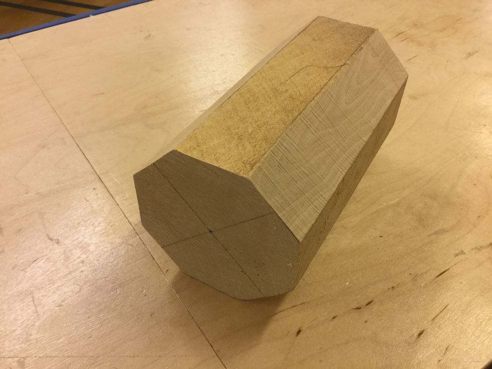 Hyvla ner hörnen på brädan till strecken, så den blir åttakantig.