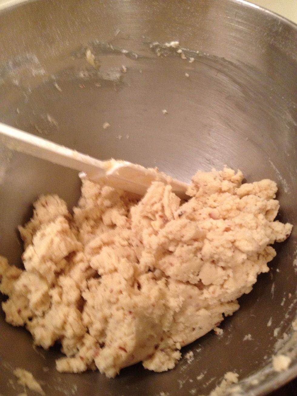Mix til the dough begins to clump and make sure you get the sides all mixed in.