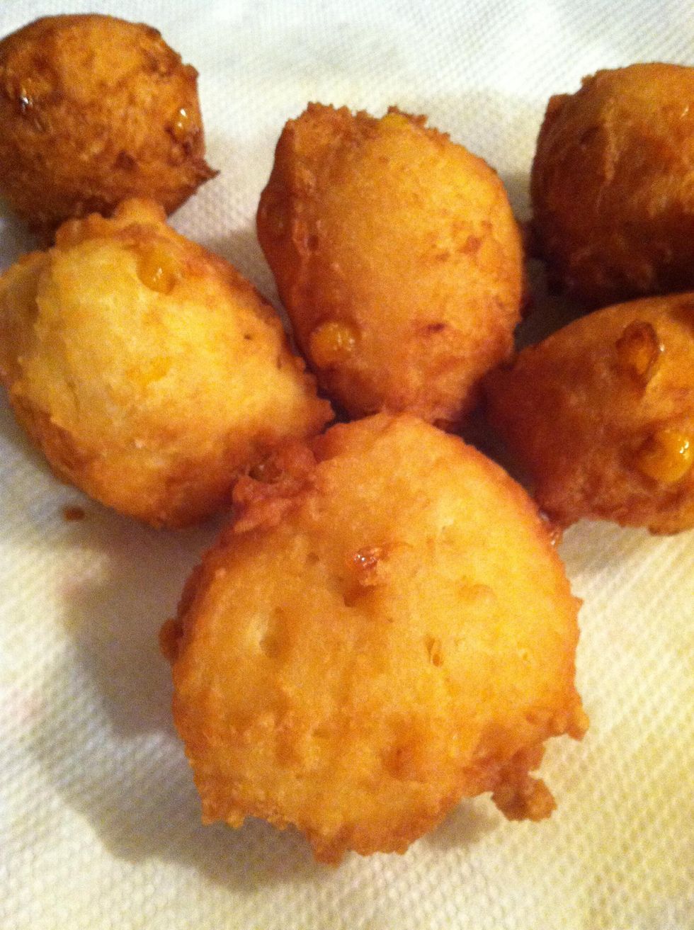 Drop by the spoonful into your hot oil and fry until golden brown. Flip them once.