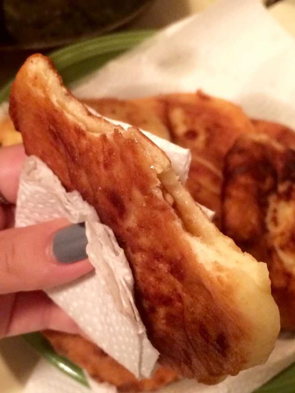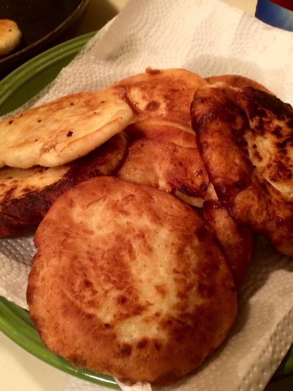 Heat up your non-stick pan over medium heat and add some vegetable oil. Place 1 ball on the pan and let it cook for 30 seconds until the bottom of the dough ball is light golden brown.