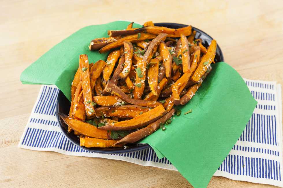 How to make sweet potato fries with garlic + herbs