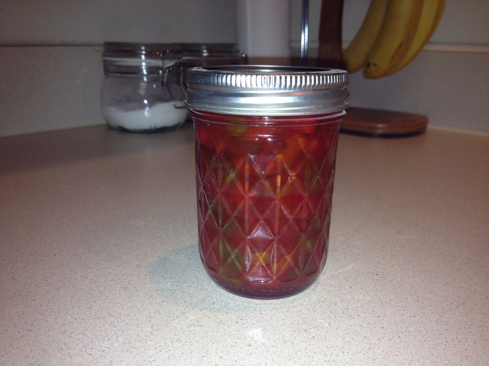 Jar until serving, best when used as topping on cream cheese and served with crackers or just as a dip on its own