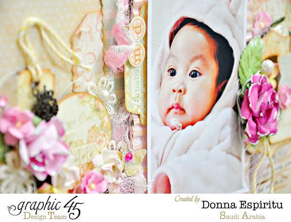 Graphic 45 staples like keys and keyholes added contrast to the soft and delicate colors in the page.