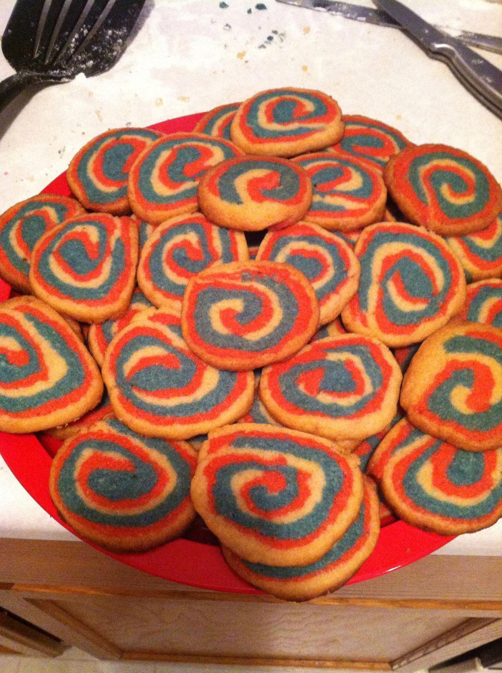 Sprinkle some flour on the counter and getting out one color of dough. I always use the natural color of the dough for the outside because then people aren't freaked out by discolored dough.