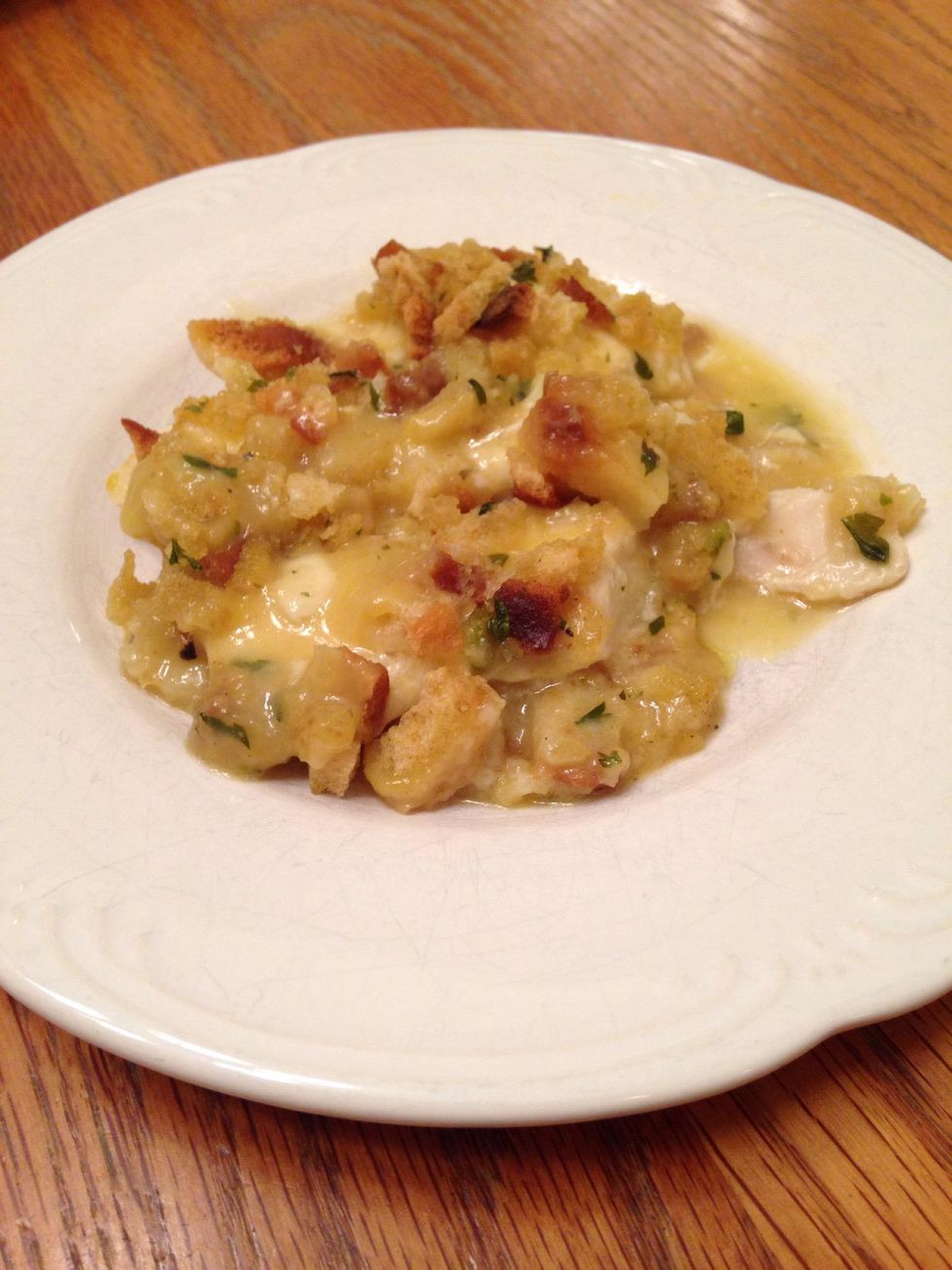 Spray casserole dish with nonstick cooking spray. Place chicken in dish. (I didn't have chicken breasts so I used chicken tenders instead.)