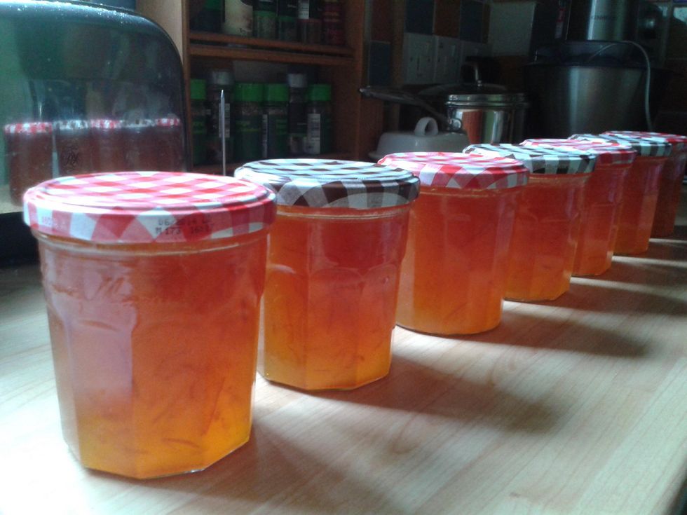 .......and your equipment - 7 jam jars & lids + spare, a large pan (about 5 litres +), a wooden spoon, a potato peeler, chopping board, sharp knife, ladle baking tray & thermometer.