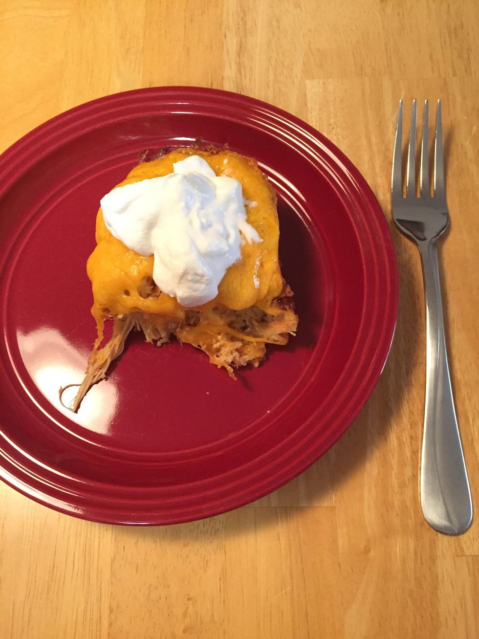 Add sour cream if desired and enjoy your delicious fiesta!