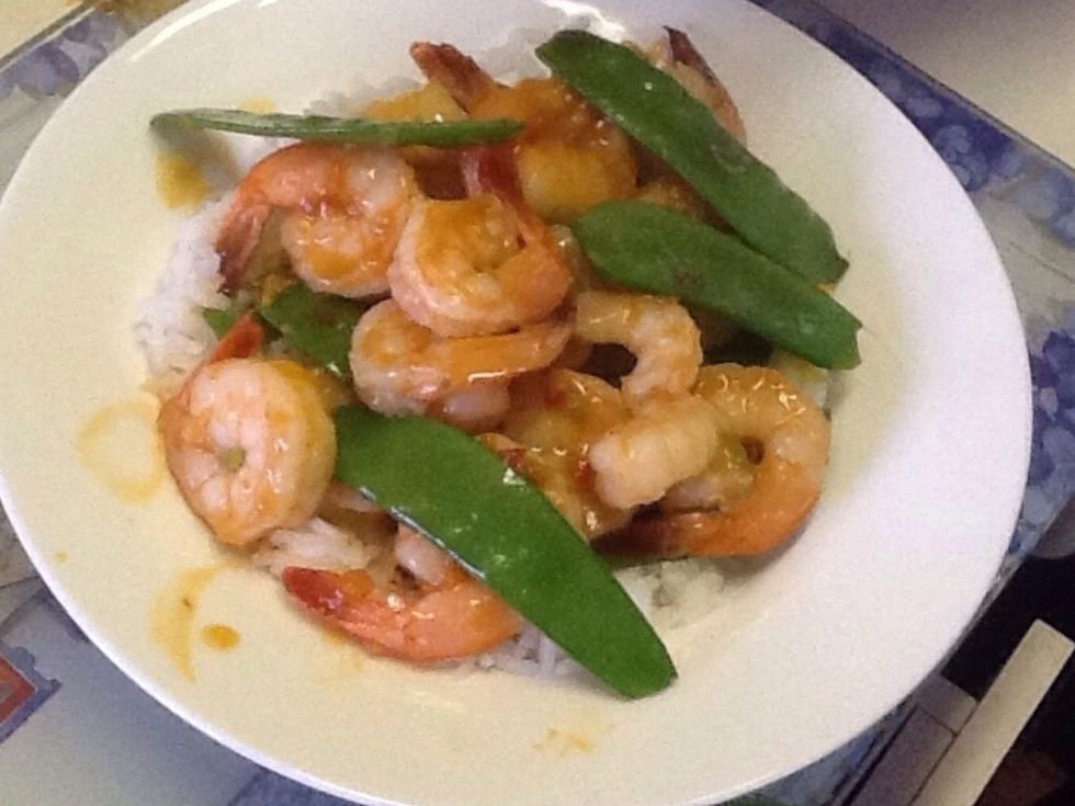 Place chilli prawns on top