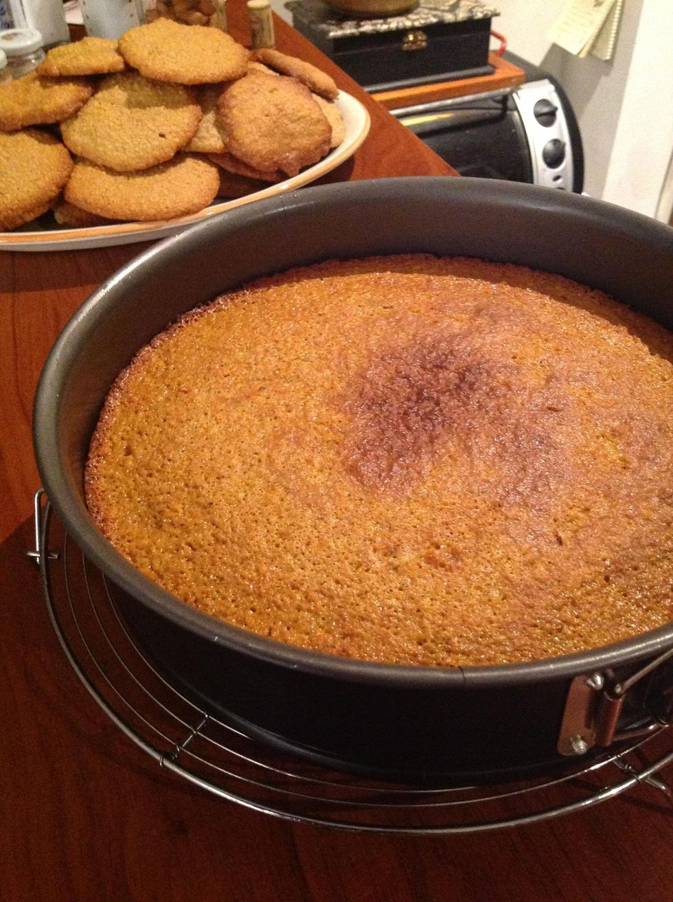 Pour the cake mixture into a prepared butter tin and bake for an hour