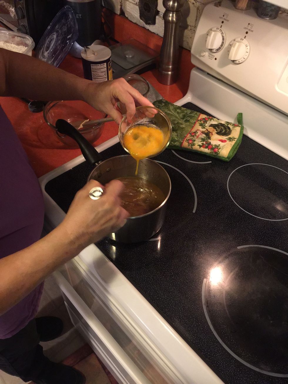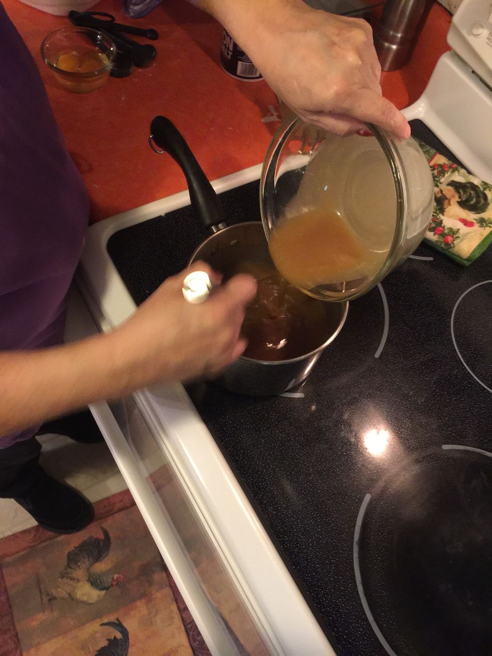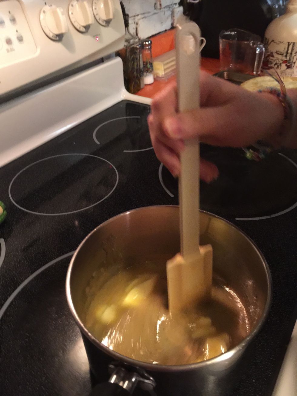 After you've whisked it up good pour it back into the pan and keep whisking until smooth