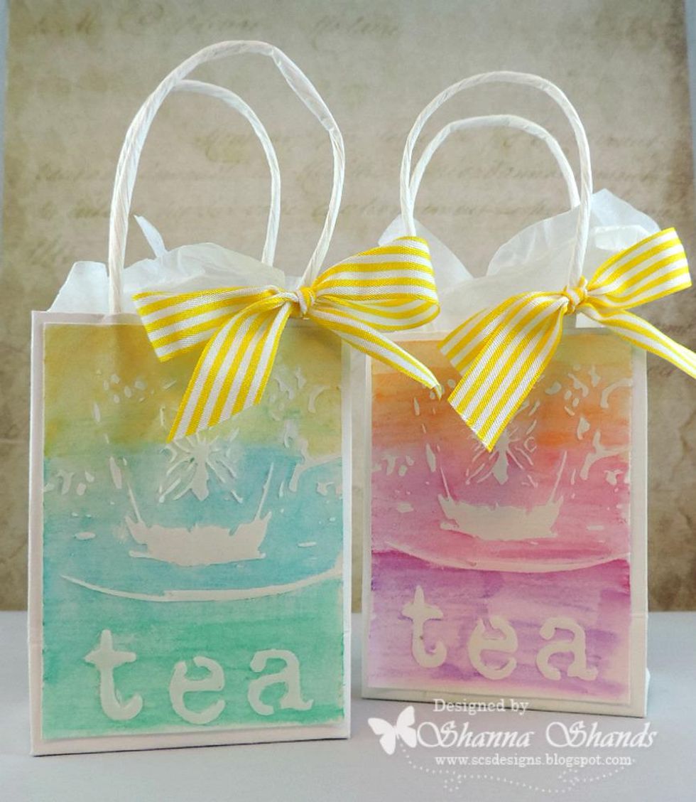 Gather supplies. Cut watercolor paper down o matte goodie bags.