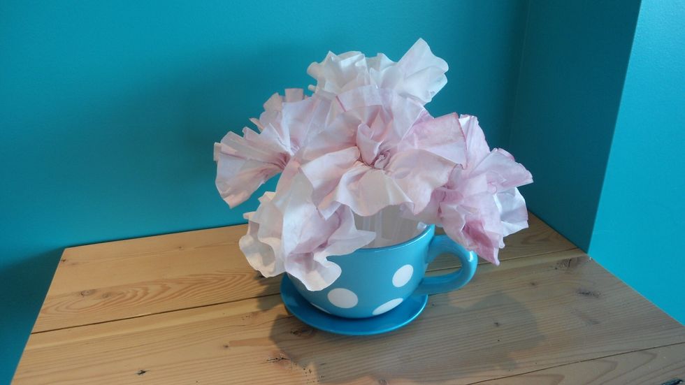Place flowers in a glass mug...