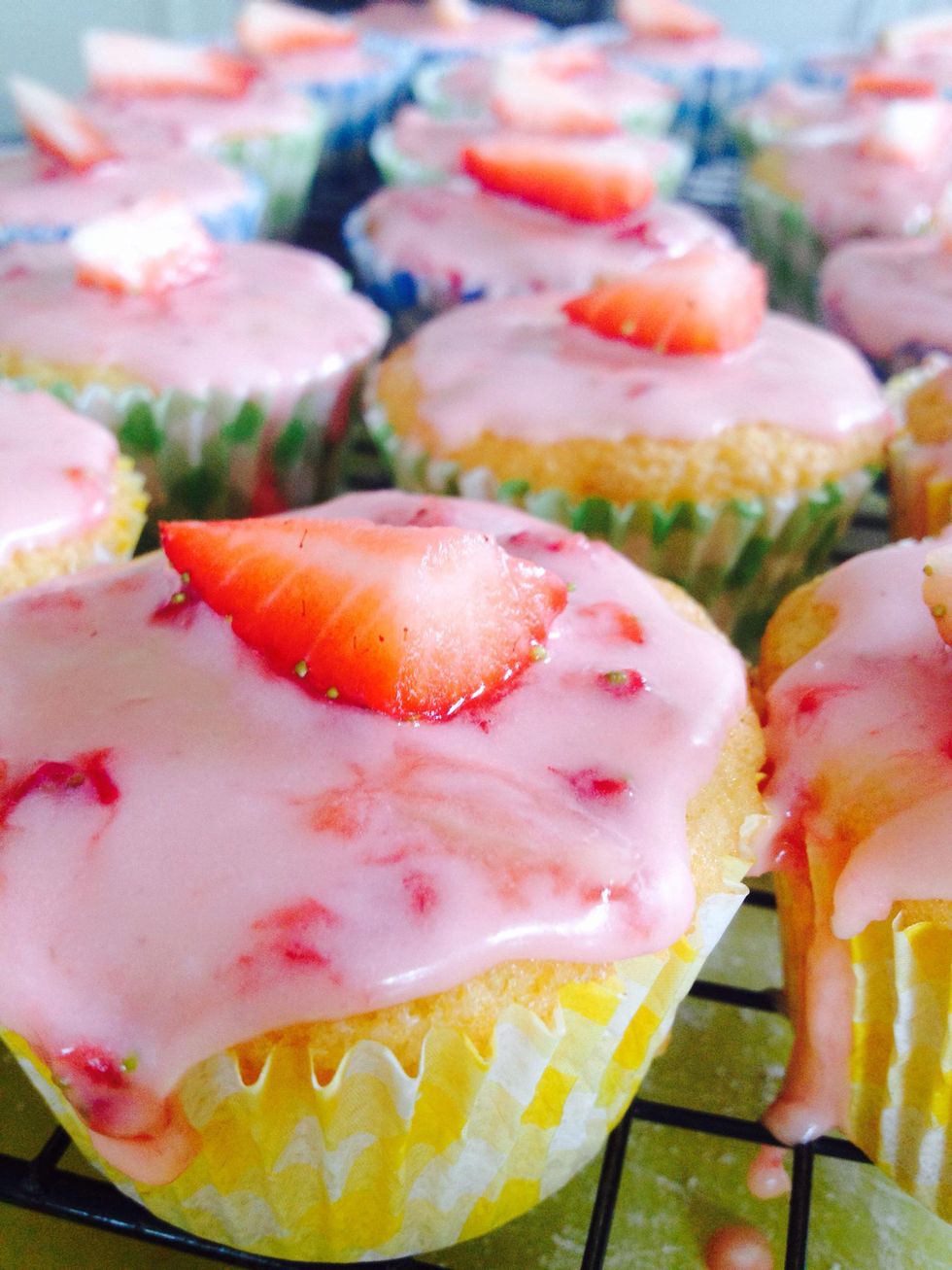 Drizzle over cakes and them add a chopped strawberry piece on top. Eat them up straight away because the topping doesn't last long. Enjoy!😜