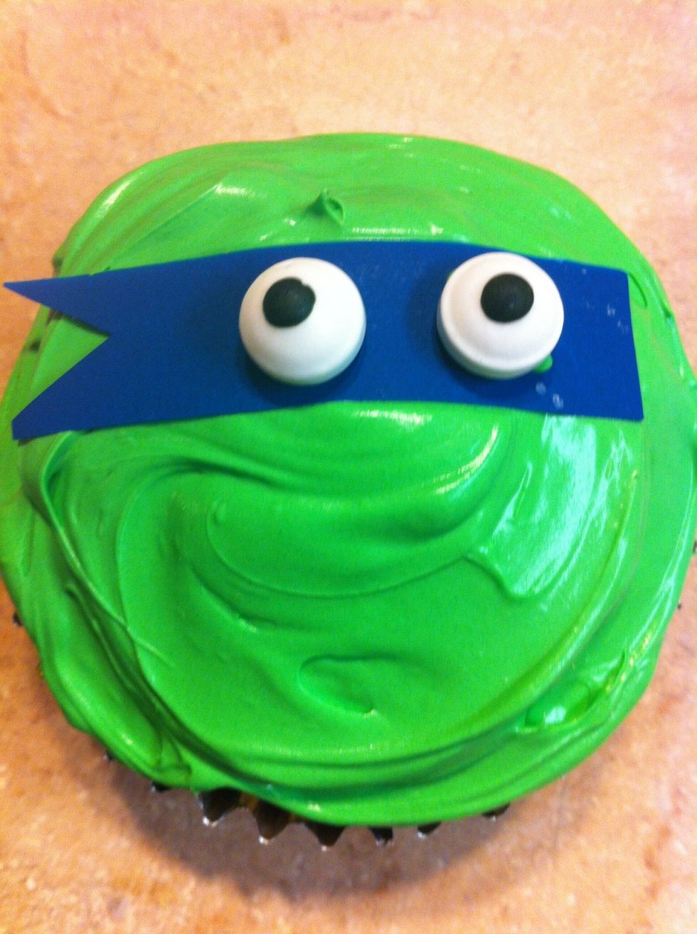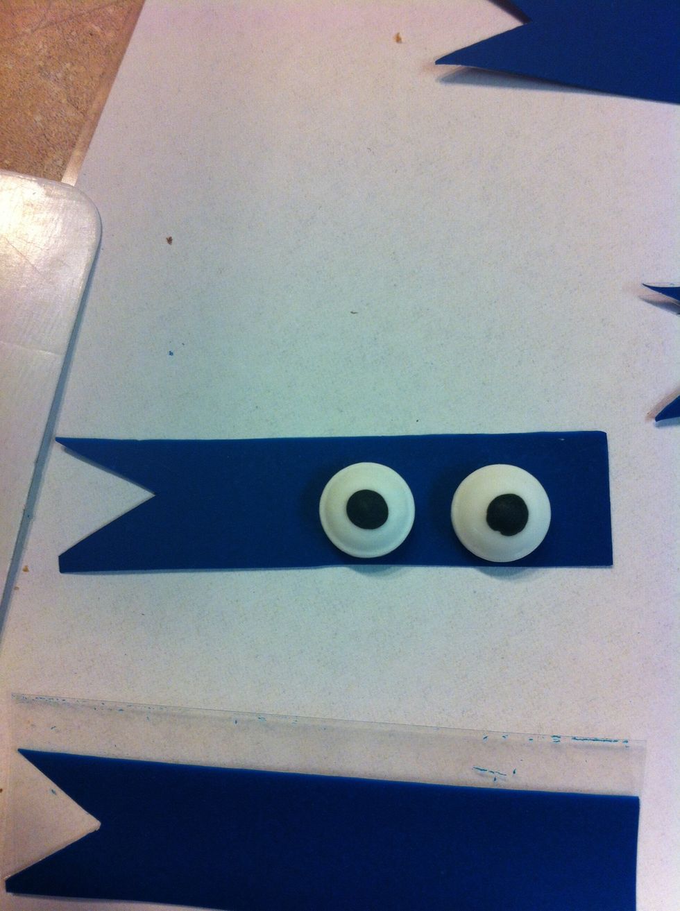 Cut the blue sugar sheet into a bandana shape for the turtles eyes.