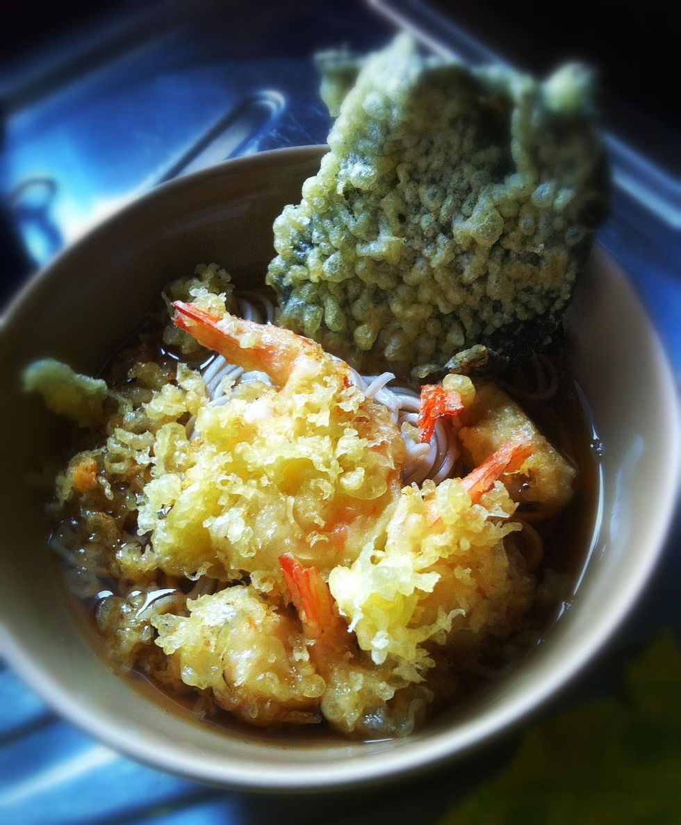 If u have left over batter sprinkle them in to oil. this will create little piece of crispy batter and u can add them in to ur soba for textures
