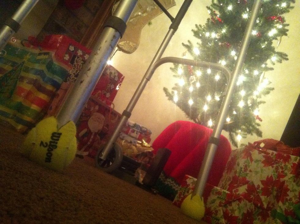 Make sure that you can squeeze the ball and hope that it fits over the walker leg.