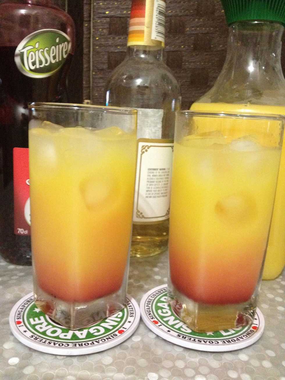 Let the grenadine settle before serving. Garnish with a slice of orange if desired.
