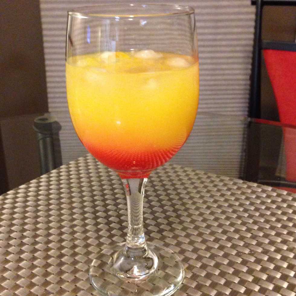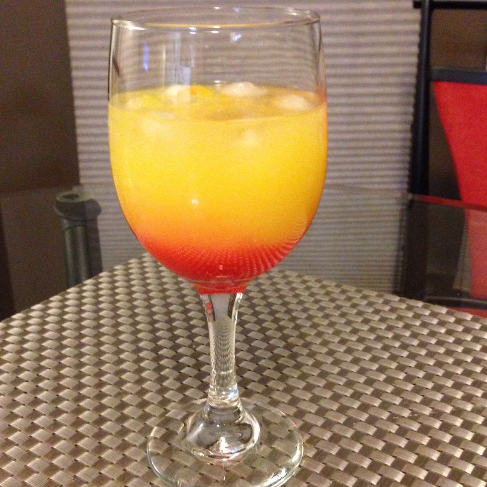 Here you have it, a classic tequila sunrise. Be sure to mix it up before drinking. I like to add some lemon juice, salt and pepper as well, you can try it too.
