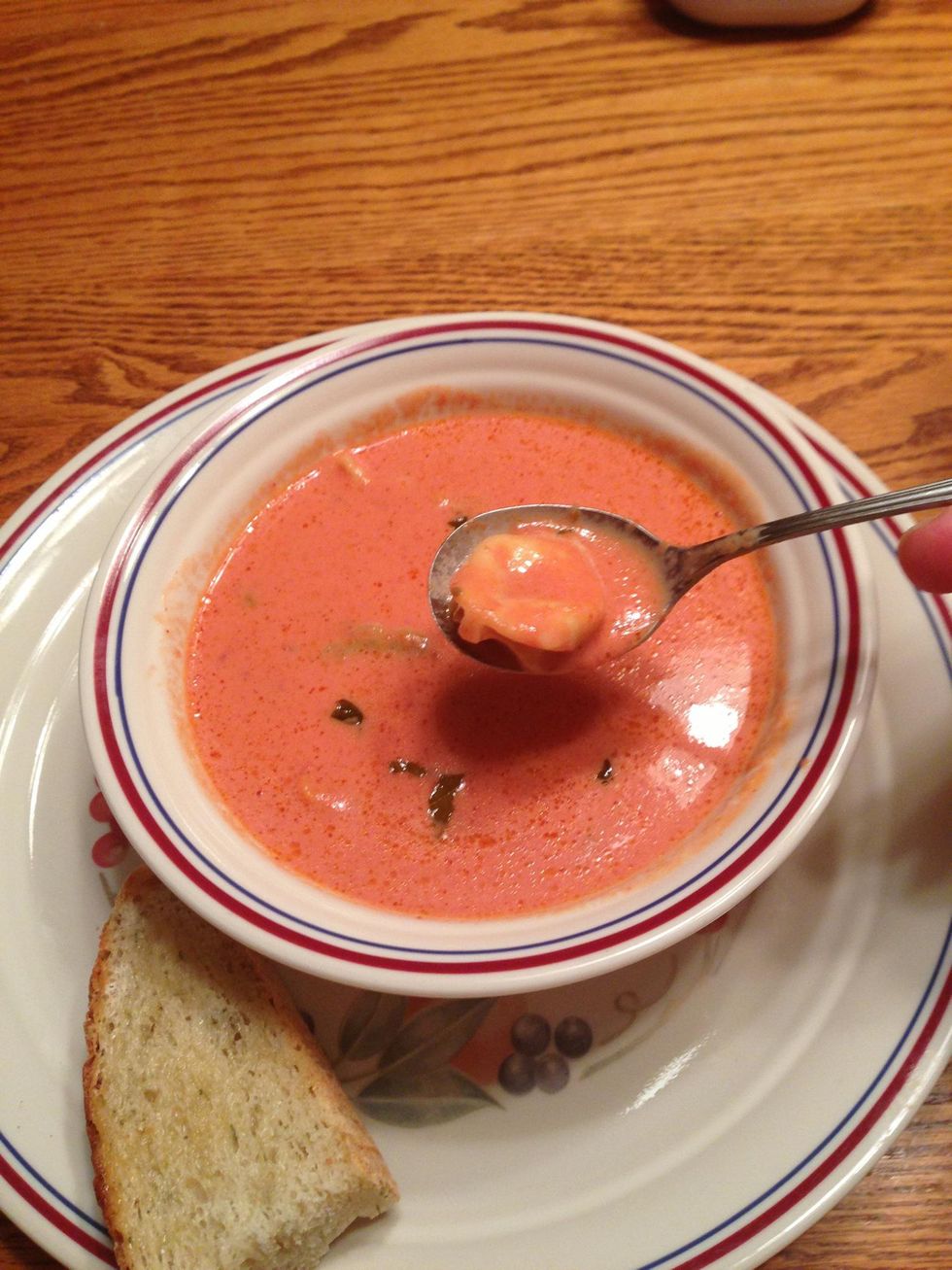 Basil and small pieces tomato add texture and tortellini gives you something to chew.