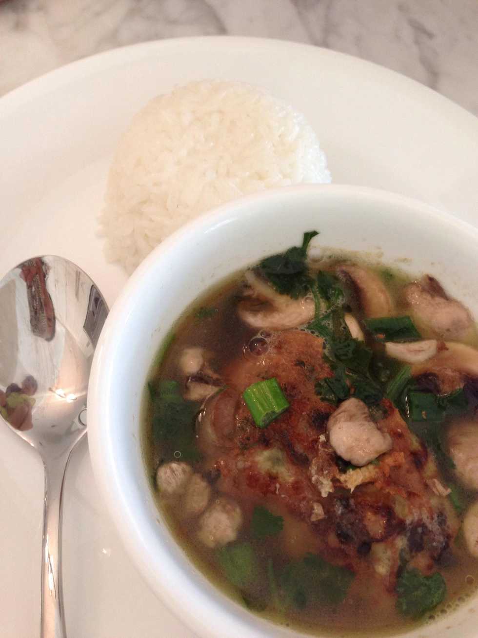 Let it boil then add green onion and cilantro. Season the soup with 1 tablespoon of fish sauce .