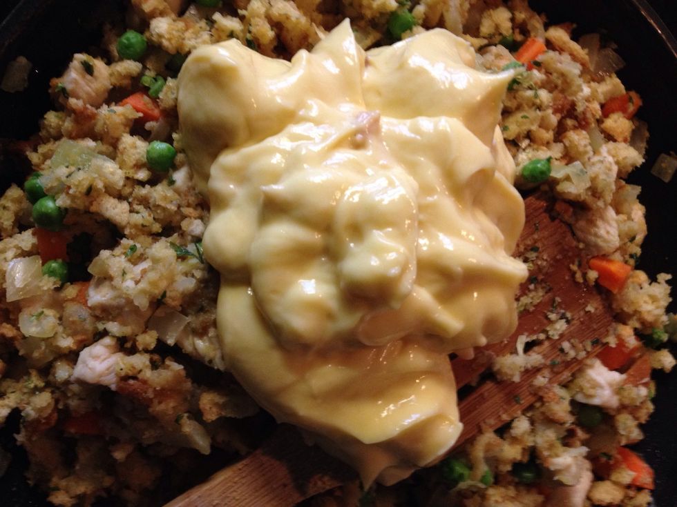 Mix in the cream of chicken