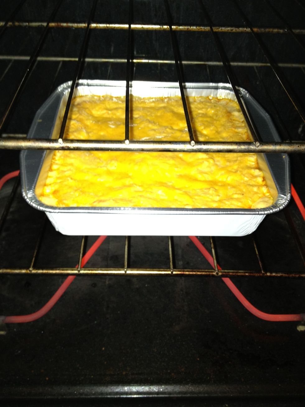 I check on the dip after approx. 20 minutes and add another small handful of Sharp Cheddar Cheese to the top and let it bake for the last 10 minutes.