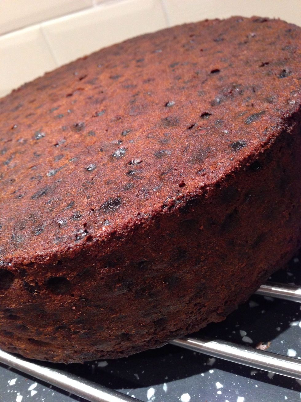 Voila! Over the next few months you should feed it with 2tbsp of brandy every 2 weeks. You will then cover with marzipan and icing 2 weeks before Christmas. In the meantime keep wrapped in waxed paper