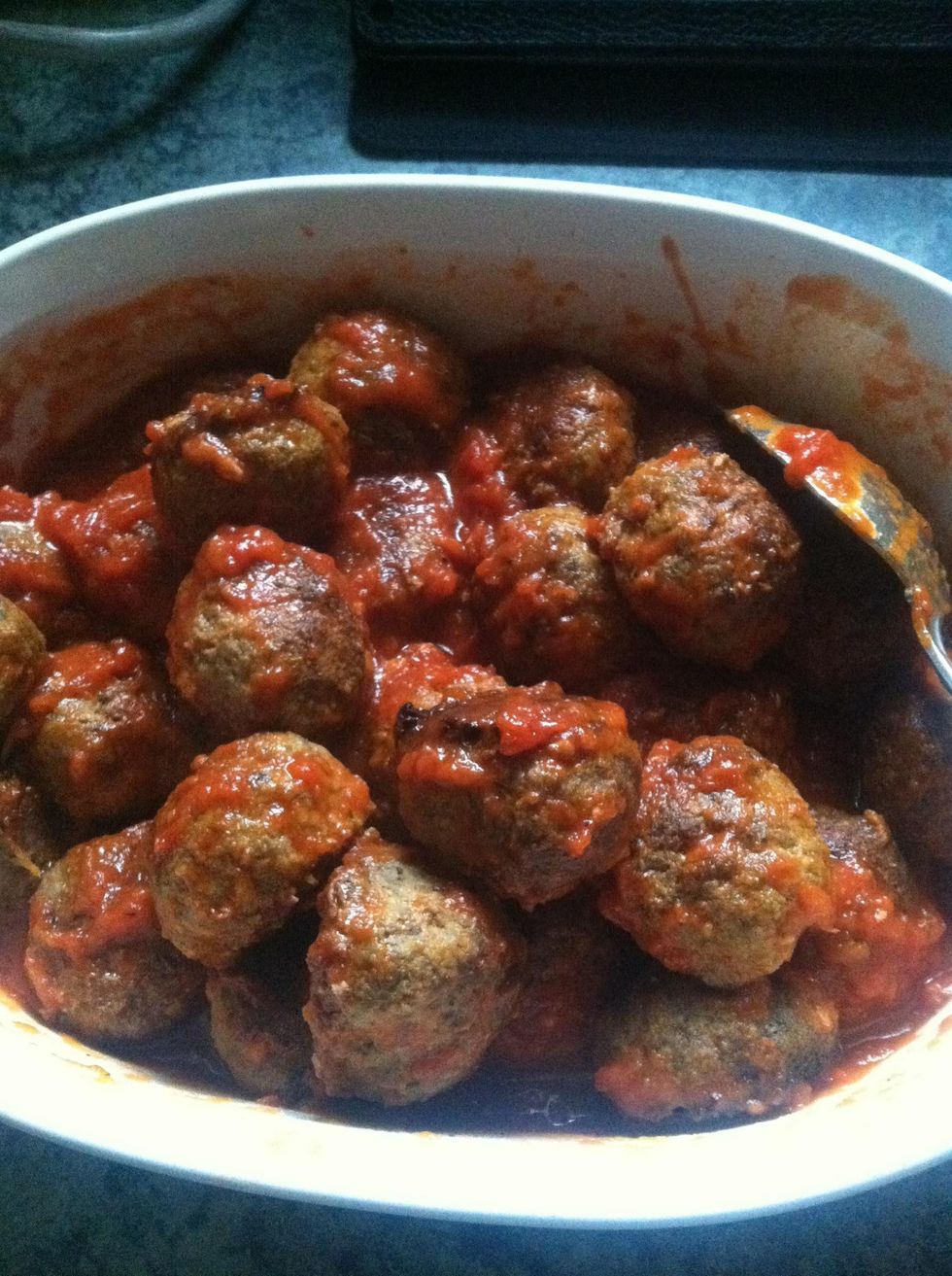 Check on them once 30mins have passed. I want them a little more crispy and golden. At this point you can get your sauce ready for when the meatballs are done.