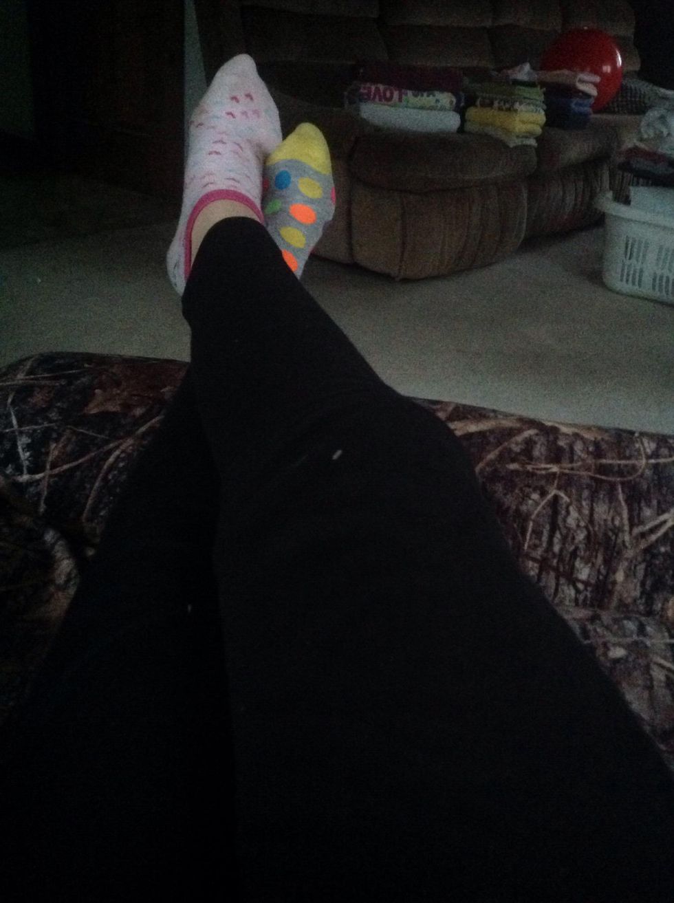 Get into comfy clothes! I am wearing a red sweatshirt and leggings